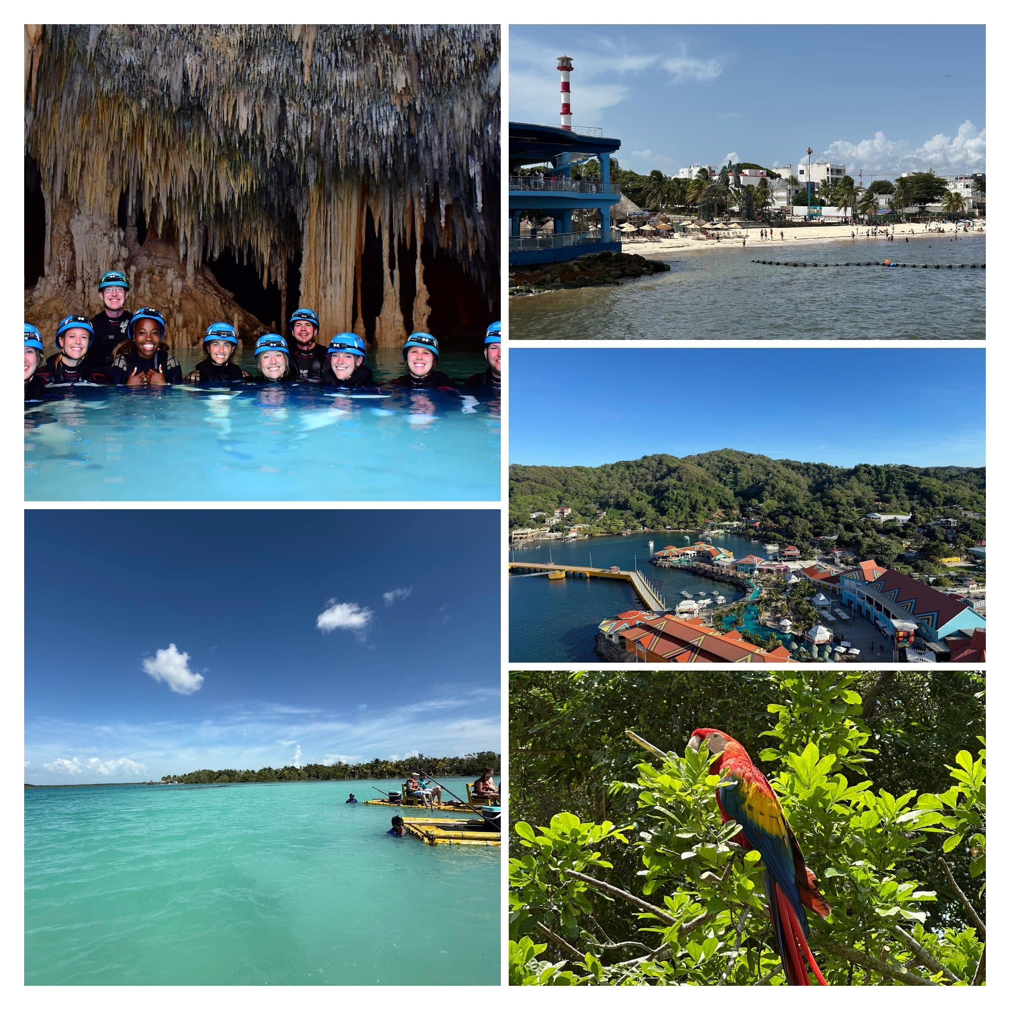 In Costa Maya we rode rafts down a river and swam in a beautiful tropical lagoon. Roatán featured a nature preserve hike and beach visit. And Cozumel was an expedition following an underground river through a series of caves.